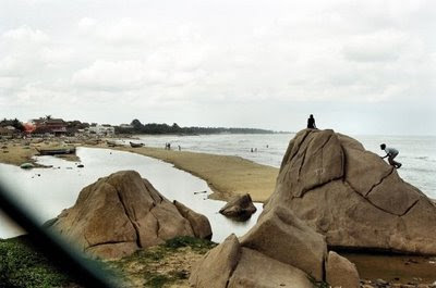 This beach was hit by the tsunami of 2004 and after the waves retracted, the tip of the gopuram of a temple emerged from the sand. Excavation is in progress to retrieve the temple (not seen in the above pic)!