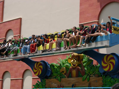 A water theme park is a water theme park, one has a fair idea of what to expect there. Pools, waves, wet rides, dry rides. Many, many of them. Screaming flocks of people in all rides, pretending to be not frightened or excited. Insect-like rides on the zenith from which human legs pop out like legs of the giant insect (see the pic below).