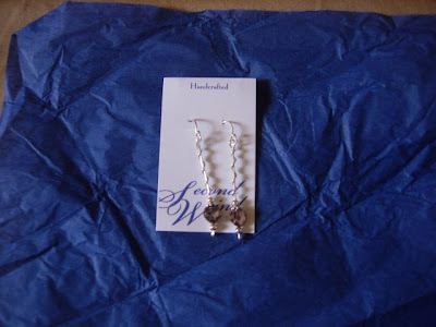 Peg sent me this gift for winning her June contest. The snap does not do justice to the earrings, they are lovely! Thanks a lot, Peg.