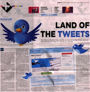 I did a U-turn regarding my take on Social Networking sites a couple of months ago when I started following the ‘right’ people with the ‘right’ interests. I was able to participate at the Bangalore Book Festival because of a chance tweet from Pothi.Com that I could easily have missed, but didn’t. And now, thanks to Gopinath Mavinkurve whom I met through Blogger/Twitter, I have had my first newspaper article published, in the New Indian Express.